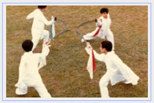| Master Xu's students practising Bagua Sabers |